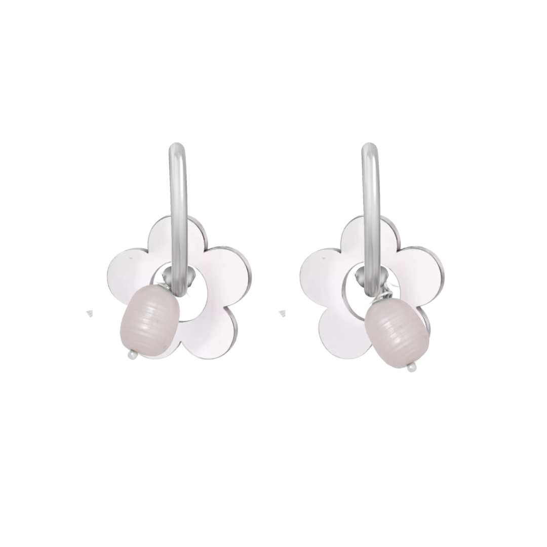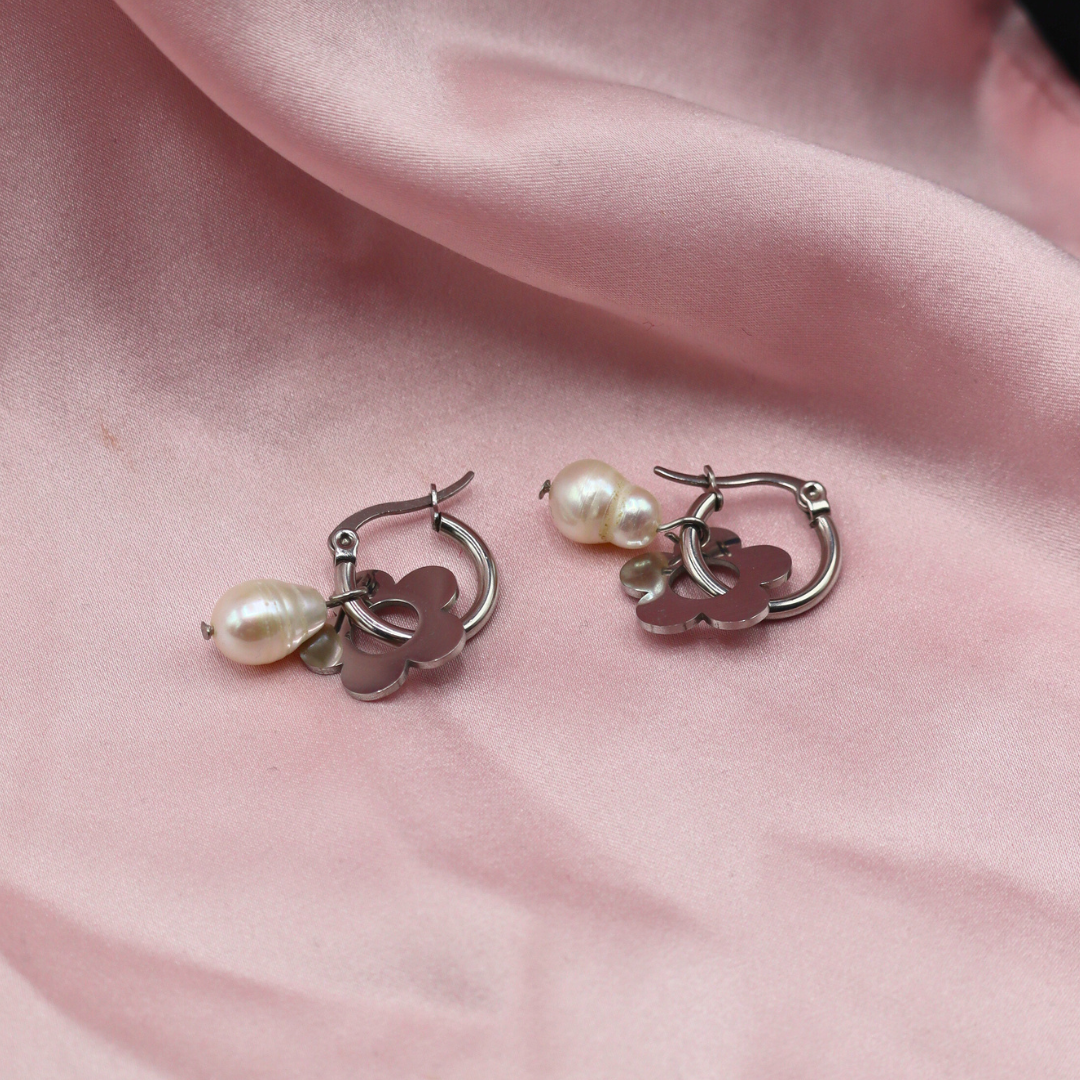 Cercei din otel inoxidabil hipoalergic cu perle.  „Floarea de aur”: feminin, rafinat, cu tentă prețioasă.